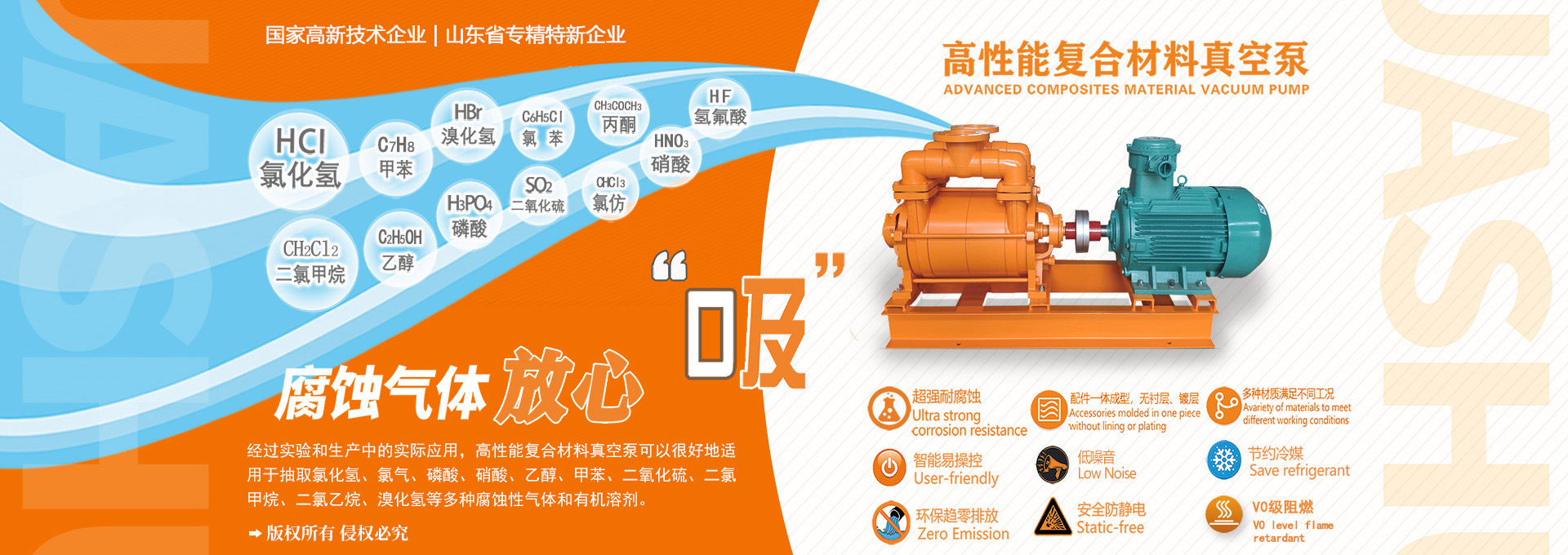 淄博華舜耐腐蝕真空泵有限公司所生產(chǎn)的防腐水環(huán)泵,防腐蝕水環(huán)泵,耐腐蝕水環(huán)泵等產(chǎn)品,產(chǎn)品過(guò)流部件采用三大系列高性能復(fù)合材料(HS-V130、HS-V110、HS-V80)一體成型,耐腐蝕范圍廣、無(wú)襯層不脫落、節(jié)能效率高、運(yùn)行可靠、環(huán)保節(jié)水、 體積小、重量輕、使用壽命長(zhǎng)等特點(diǎn)。 淄博華舜耐腐蝕真空泵有限公司是一家集科研開(kāi)發(fā)、設(shè)計(jì)咨詢(xún)、生產(chǎn)、銷(xiāo)售、服務(wù)于一體,利用新型高性能復(fù)合材料,專(zhuān)業(yè)生產(chǎn)耐腐蝕液環(huán)真空泵的國(guó)家高新技術(shù)企業(yè), 坐落于“中國(guó)泵業(yè)名城”---山東省淄博市博山區(qū),公司通過(guò)了ISO9001質(zhì)量體系認(rèn)證。公司獨(dú)立研發(fā)的具有多項(xiàng)自主知識(shí)產(chǎn)權(quán)的專(zhuān)利產(chǎn)品-耐腐蝕系列水環(huán)式真空泵,通過(guò)了省級(jí)科技成果鑒定,處于“國(guó)際先進(jìn)水平”。 在全體員工的共同努力下,公司榮獲國(guó)家高新技術(shù)企業(yè)、科技創(chuàng)新示范企業(yè)、創(chuàng)新型優(yōu)秀新產(chǎn)品一等獎(jiǎng)、科技型中小企業(yè)、山東省“專(zhuān)精特新”企業(yè)、省級(jí)一企一技術(shù)研發(fā)中心、淄博市專(zhuān)利獎(jiǎng)、高價(jià)值專(zhuān)利獎(jiǎng)、山東省民營(yíng)經(jīng)濟(jì)知名品牌等榮譽(yù)稱(chēng)號(hào)。2021年與山東大學(xué)聯(lián)合成立海洋耐腐蝕材料聯(lián)合實(shí)驗(yàn)室及裝備產(chǎn)學(xué)研合作基地。